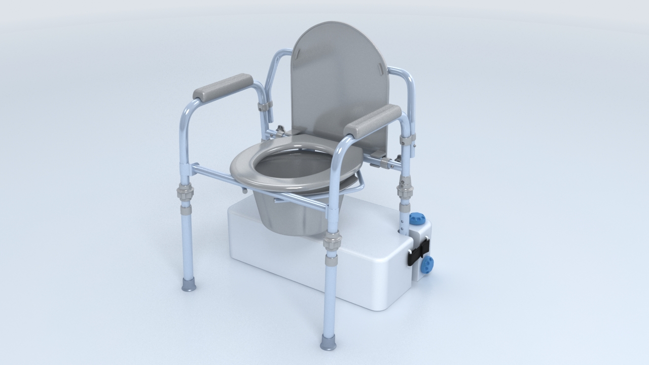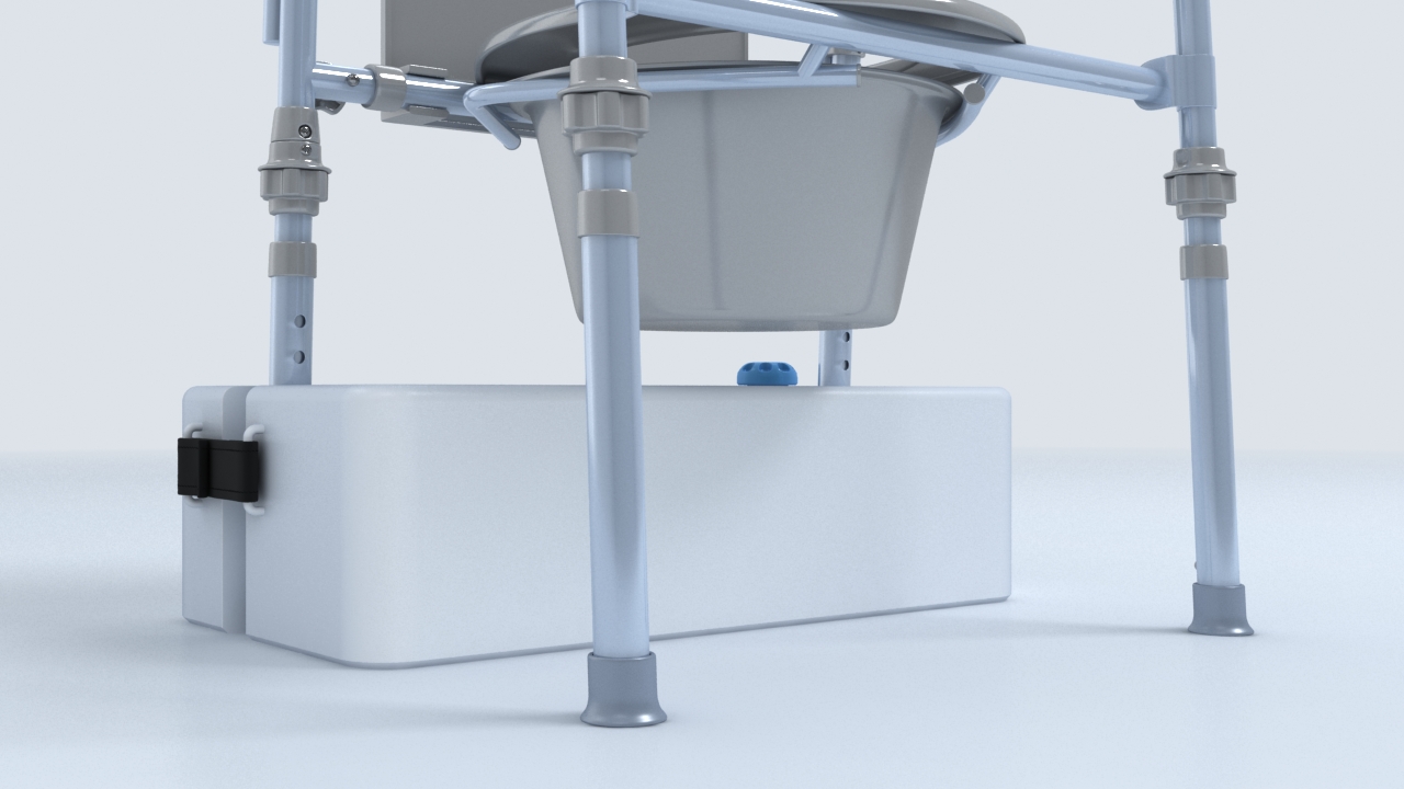 EaK Anchor is a portable chair weight, designed to attach to the legs of chairs to keep them from accidentally tipping over. Bedside commode chairs and other kinds of portable seats can be more unstable than regular chairs, posing a tipping and fall hazard to elderly users. EaK Anchor provides a sturdy base for portable chairs, helping to reduce the risk of falls and injuries when getting up or down from the chair. EaK Anchor can be easily filled with water or sand to create a weighted base, and features clamps at the corners to hold the chair legs snugly in place. Perfect for commode chairs, EaK Anchor offers stability and peace of mind to older users, patients, and caretakers.